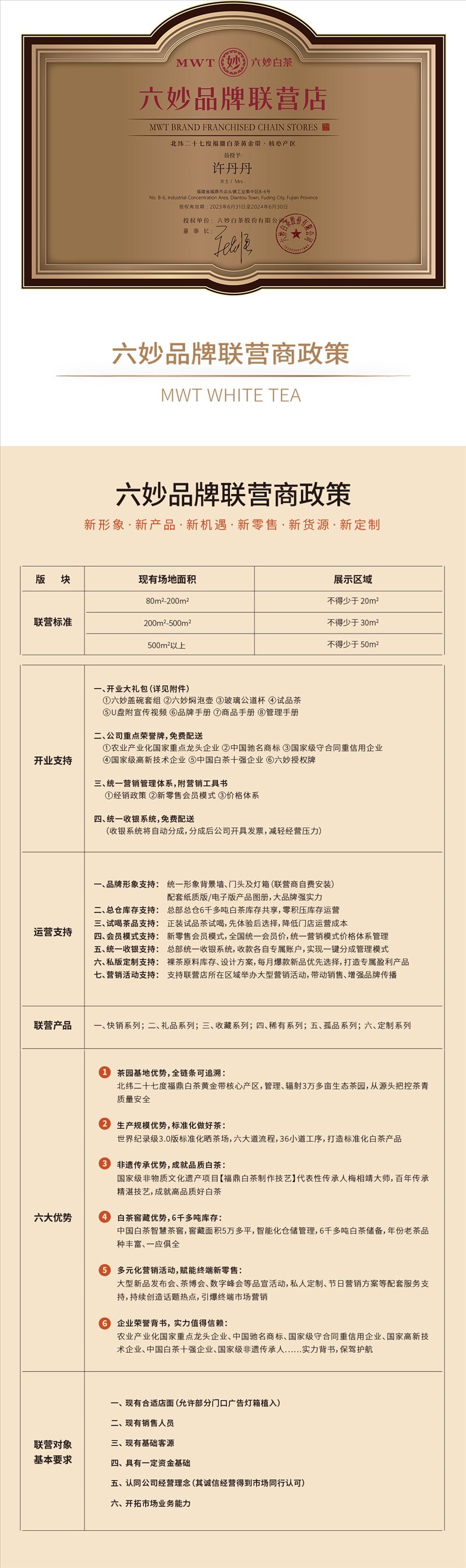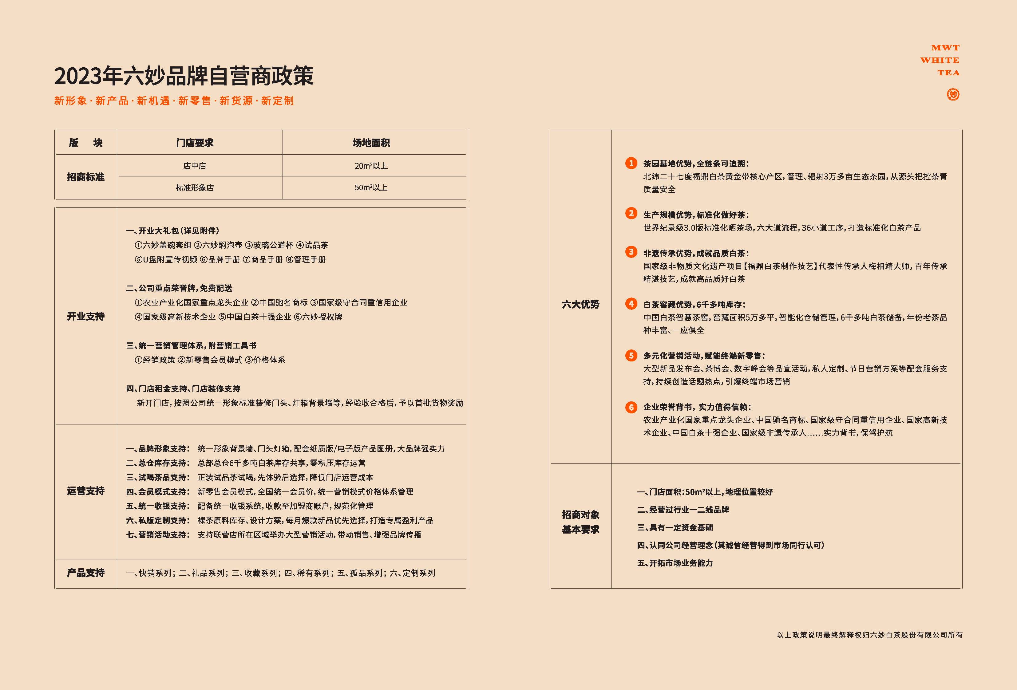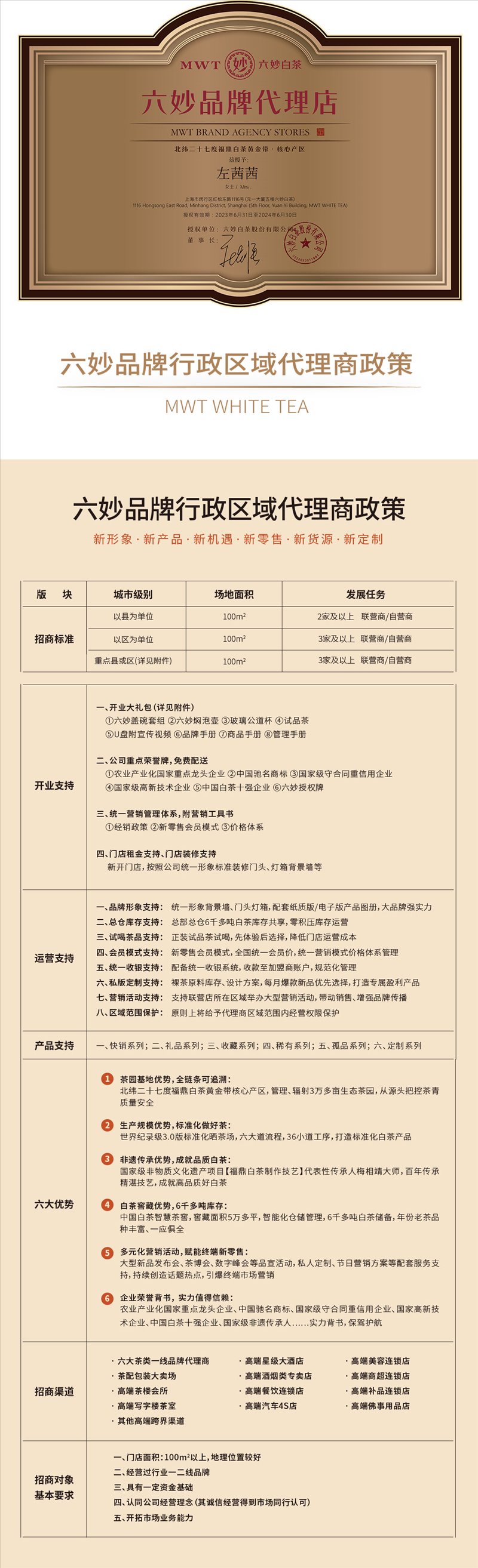 六妙白茶傾情推出三大招商合作政策,現以“新形象·新產品·新機遇·新零售·新貨源·新定制”六新模式展開對全國招募特約合作商,共同打造以消費者體驗為核心的新篇章。